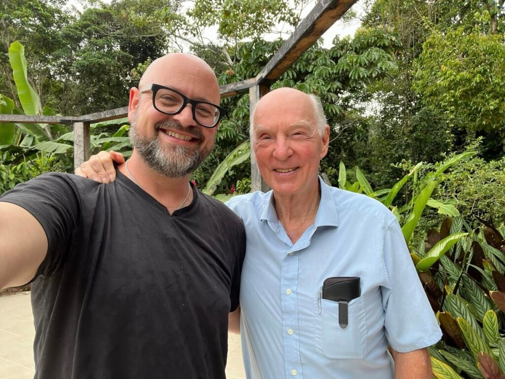 Last week I had the amazing opportunity to meet Douglas who calls himself El Gringo Loco Viviendo en la Amazonia (the crazy gringo living in the Amazon), during a visit to his beautiful Yachana Foundation. Although I’m tallest in the pictures, make no mistake-he’s greater. It was a pleasure to talk with him, receive his hospitality, and end our visit with best wishes and a hug. I’m grateful to have felt his great energy for good. He has impressed me for years. The fact that he began working on preservation, conservation, and restoration of the Amazon at the time he did is remarkable. He is truly a treasure in the world, someone who has contributed much.